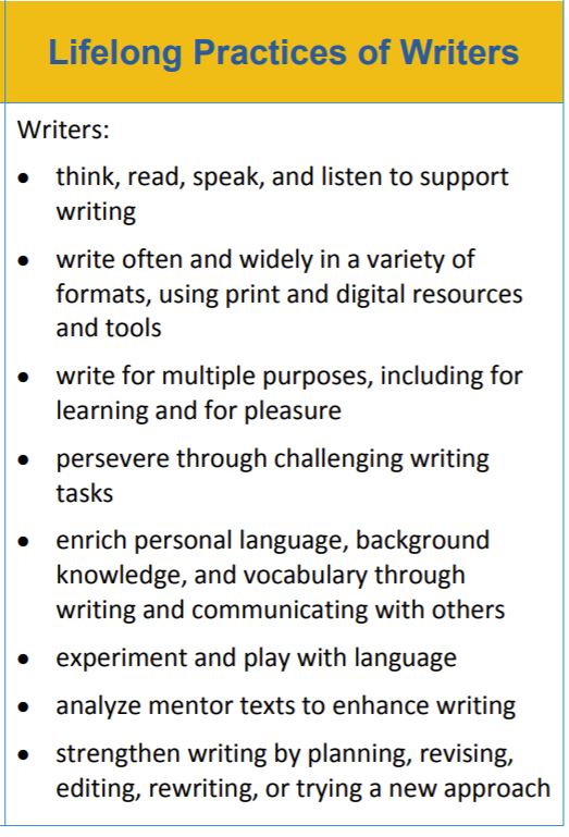 Grounded in ALL of the New York State NGLS Lifelong Practices For Writers