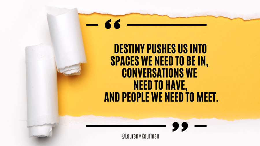 Sometimes destiny pushes us into spaces we need to be in, conversations we need to have, and people we need to meet. Destiny brings us full circle, running into people from our past and standing before them in the future, creating new stories that shape who we are becoming. This week, it felt good to see someone I had known briefly from the past and say, “It’s nice to see you again,” instead of, “It’s nice to meet you.” These moments remind us how our paths are always unfolding. As Karen Eber shares in her book The Perfect Story, “A great story acts as a roadmap, guiding your audience through information to build an idea, feeling, or inspire action. They act as an open door, inviting people to come through.” (p.16)