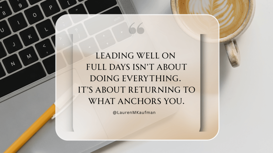 Leading well on full days isn’t about doing everything. It’s about returning to what anchors and sustains you even when your plate is overflowing.