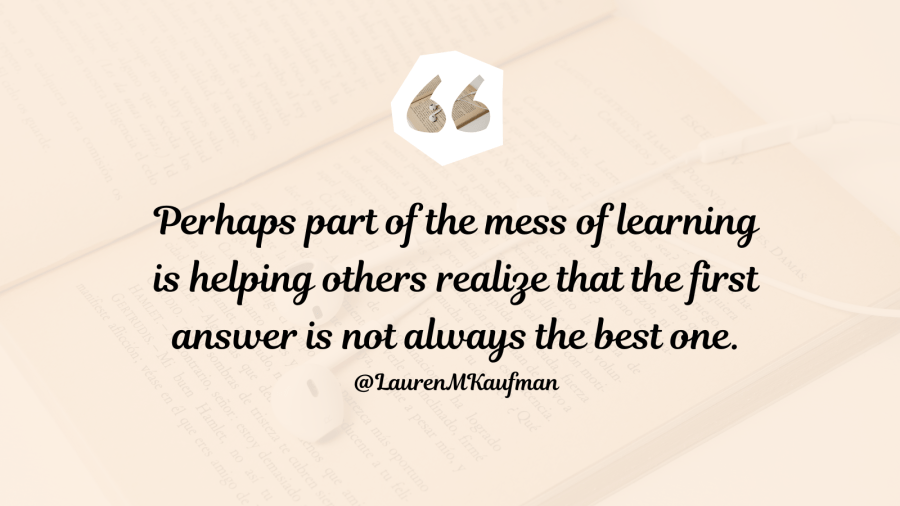 Perhaps part of that mess of learning is helping others realize that the first answer is not always the best one. Growth often happens when we pause, consider another possibility, and ask one more question.